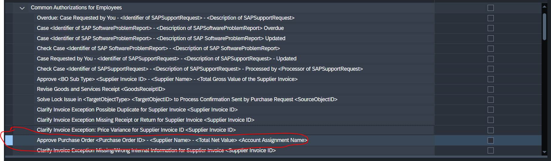 Expand Home and then expand Common Authorizations for Employees and it should say approve purchase order