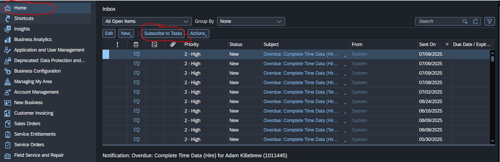 You can find the different emails you can get by going to Home -> Inbox and then clicking subscribe to task.