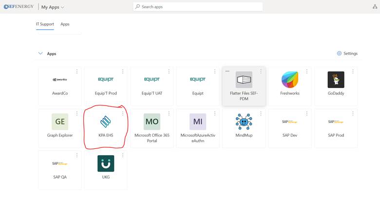 1. Going through the My Apps Page - https://myapplications.microsoft.com/ - after you sign in you will click KPA EHS