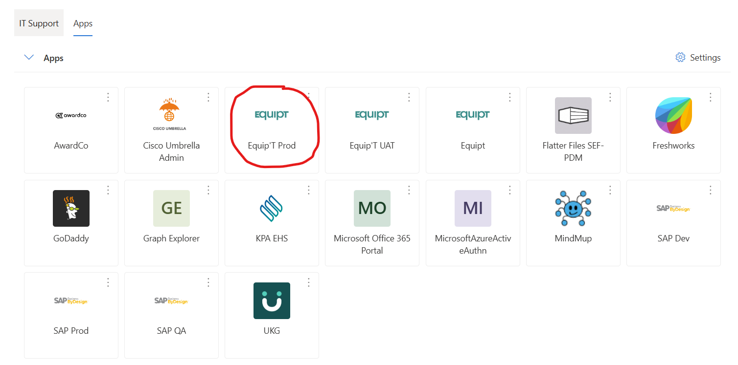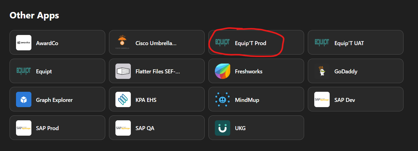 Under Other Apps, you will click Equipt Prod and it will take you to the homepage - Equipt will most likely email you a verification code to enter