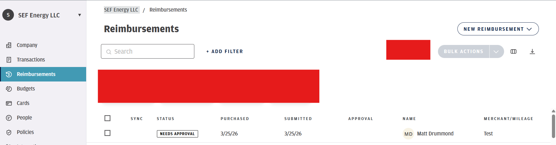 If you have multiple and are looking for a specific one you can search the employees name you are approving reimbursements for.