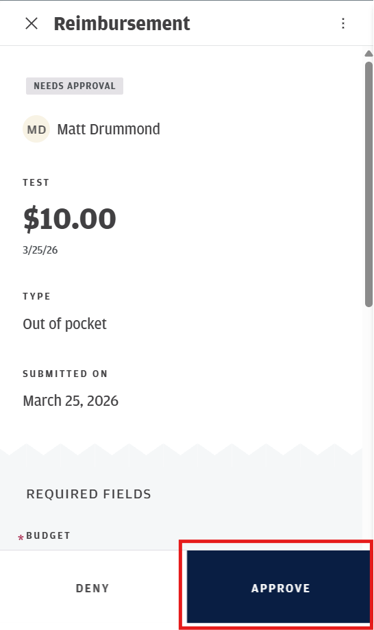 Click the Reimbursement you want to verify and approve - you will click approve in the bottom right of the window that comes up