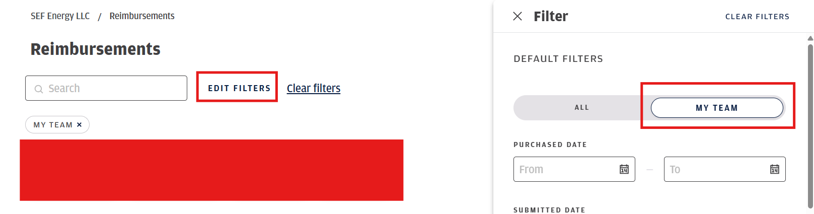 After you login, you will click the reimbursement tab and click edit filters and click My team - this should show everyone you are approving for